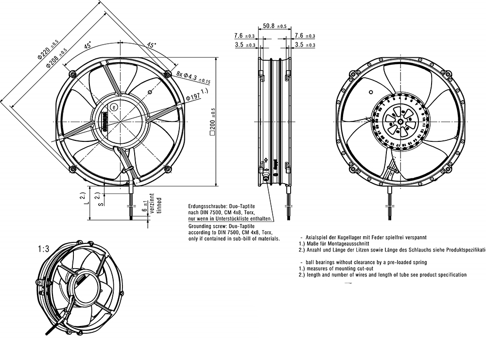 2218F/2TDH4OR-230/A01 Ebm-papst Specification Drawing: