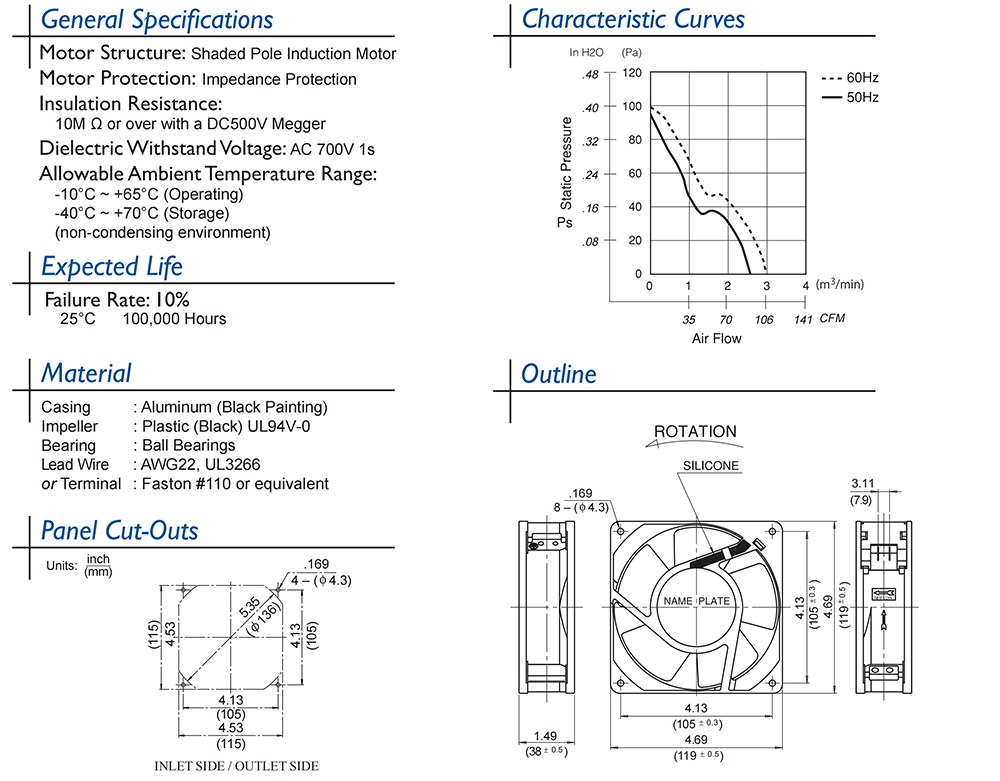 4715HS-24T-B50-AM0 240V powerful cooling for industrial cabinets, terminal type for easy install and maintenance.