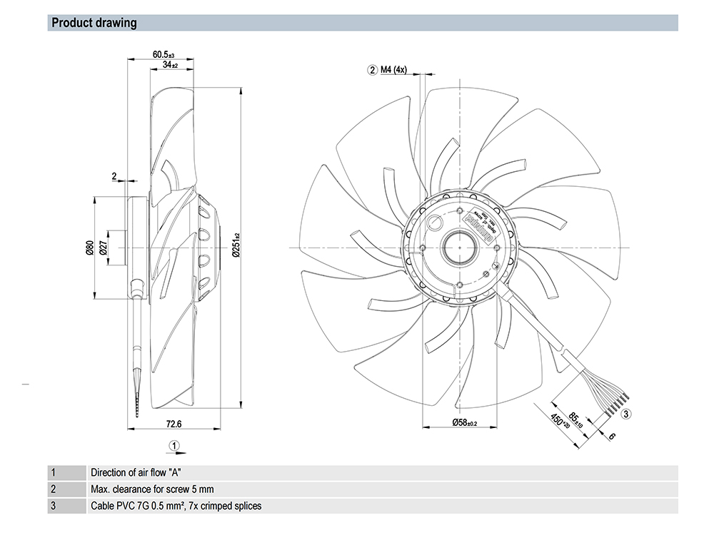 A2D250-AI02-01 Ebm-papst Specification drawing: