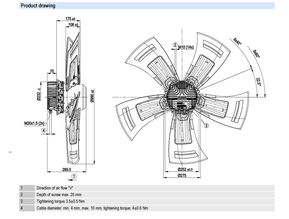 A3G990-AZ02-01 Ebm-papst Specification drawing:
