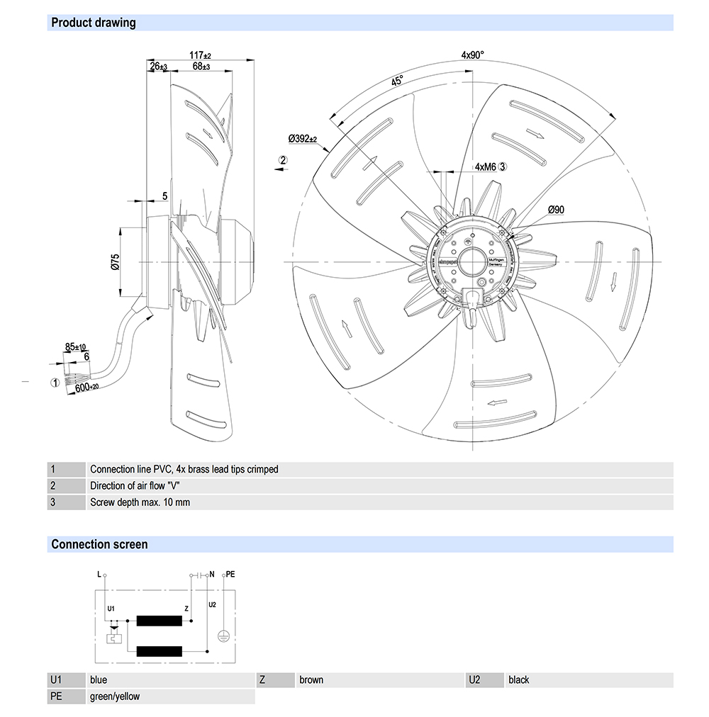 A4E400-AP02-01 Ebmpapst Specification Drawing: