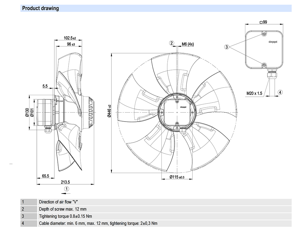 A4E450-AO09-01 Ebm-papst Specification Drawing: