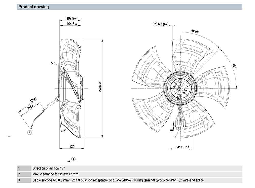 A6E500-AJ03-05 Ebm-papst Specification drawing: