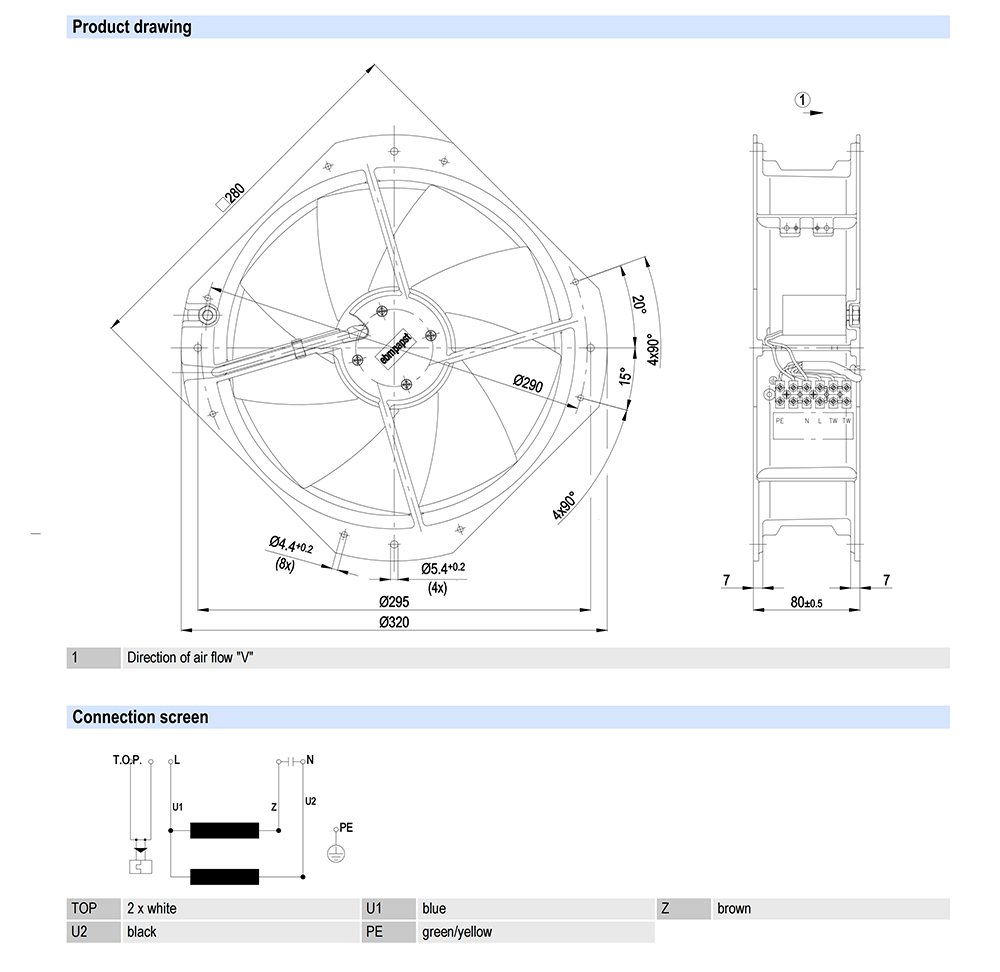 W2E250-HL06-05 ebmpapst Specification drawing: