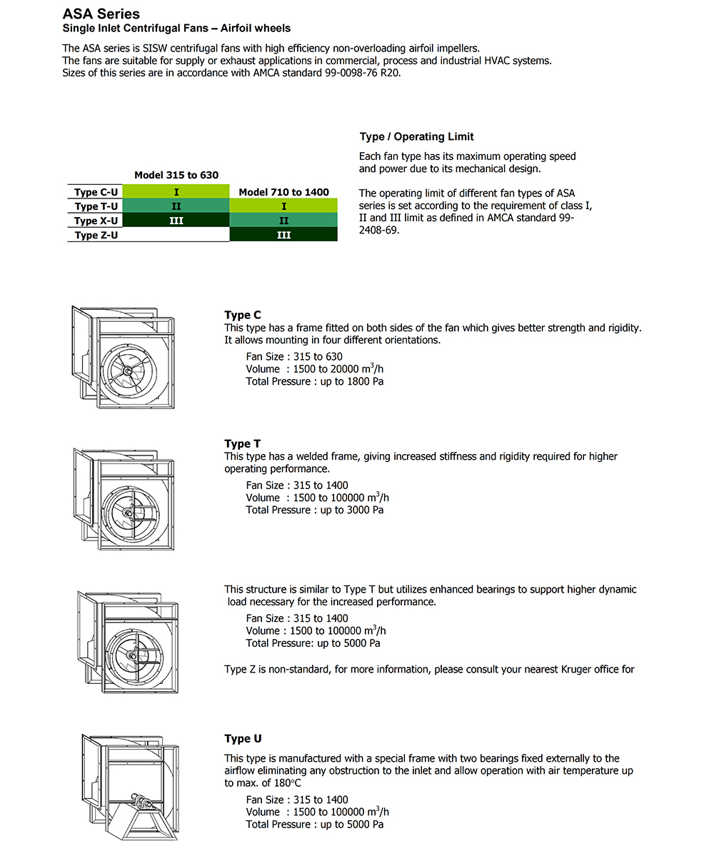 ASA Series - Single Inlet Centrifugal Fans - Airfoil Wheels