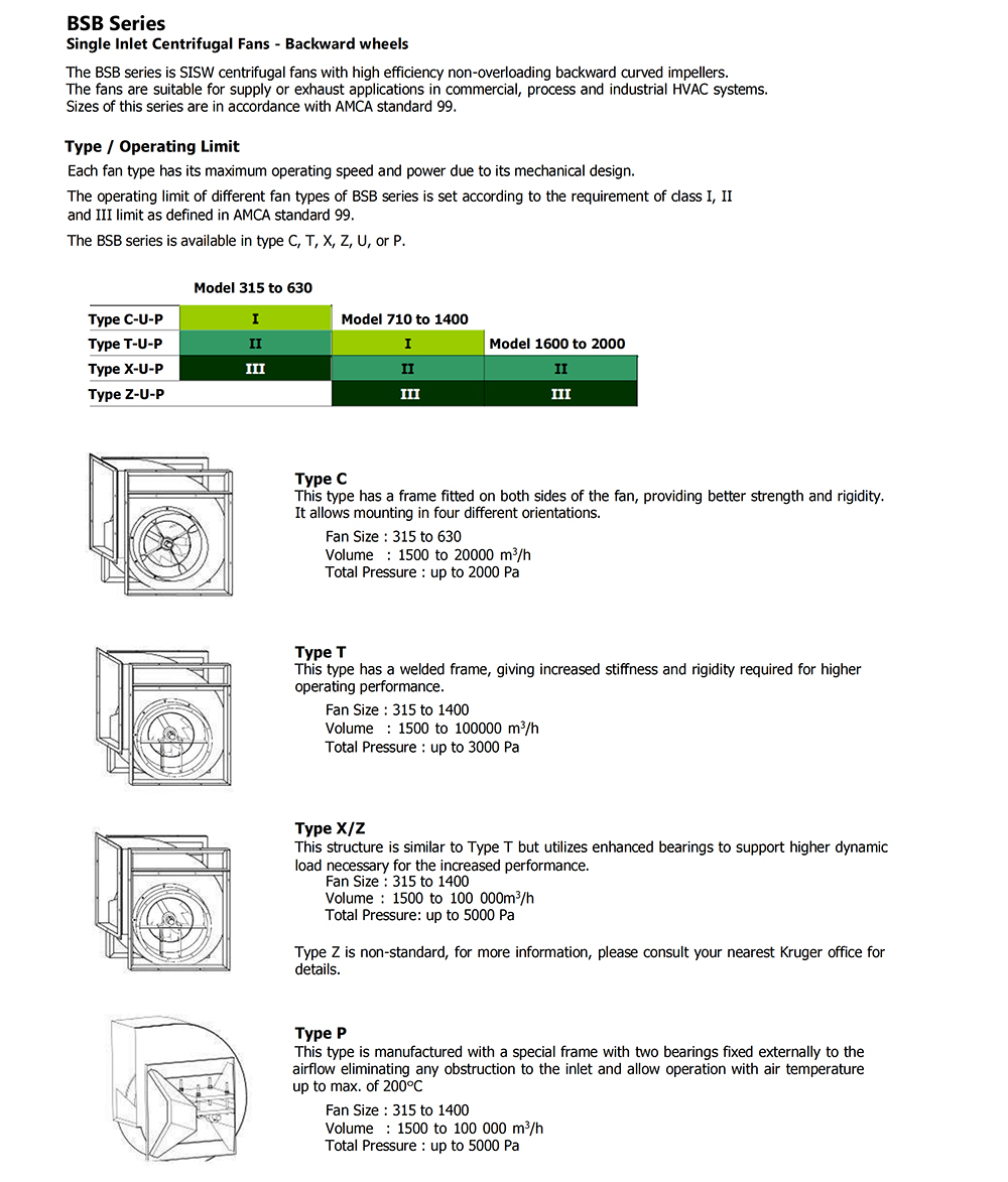 BSB series is SISW centrifugal fans with high efficiency non-overloading backward curved impellers.