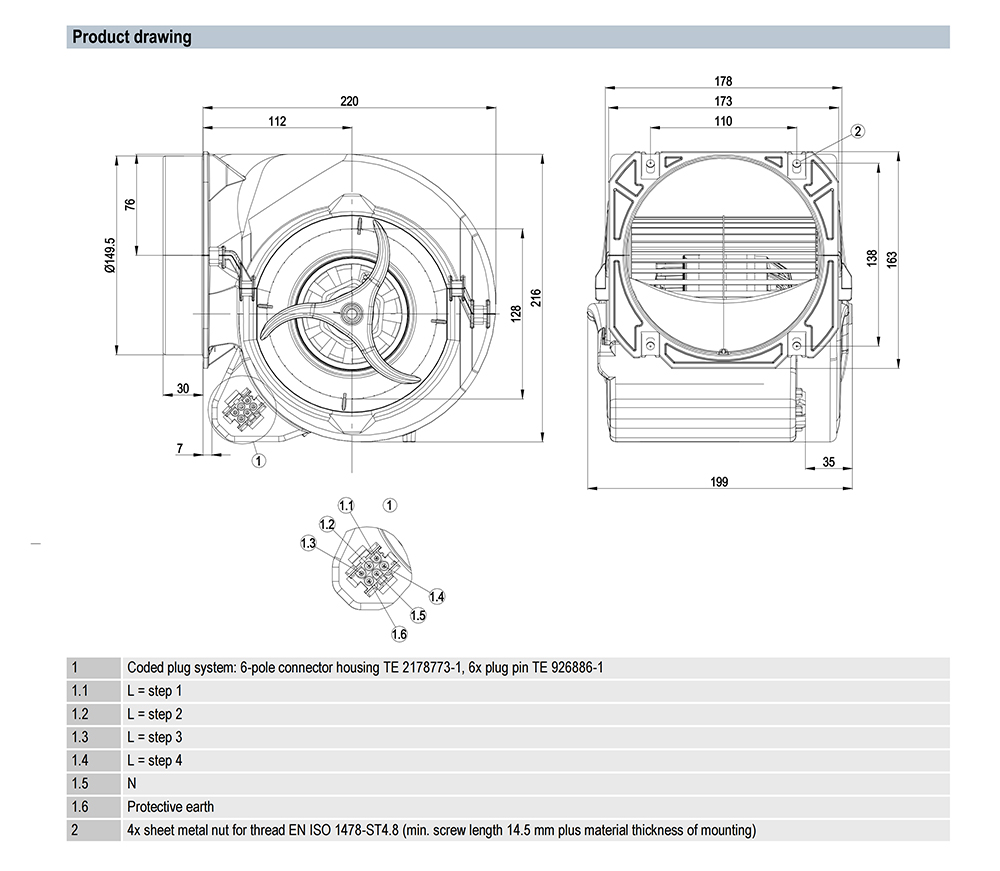 D2E146-HT67-39 Ebm-papst Specification Drawing: