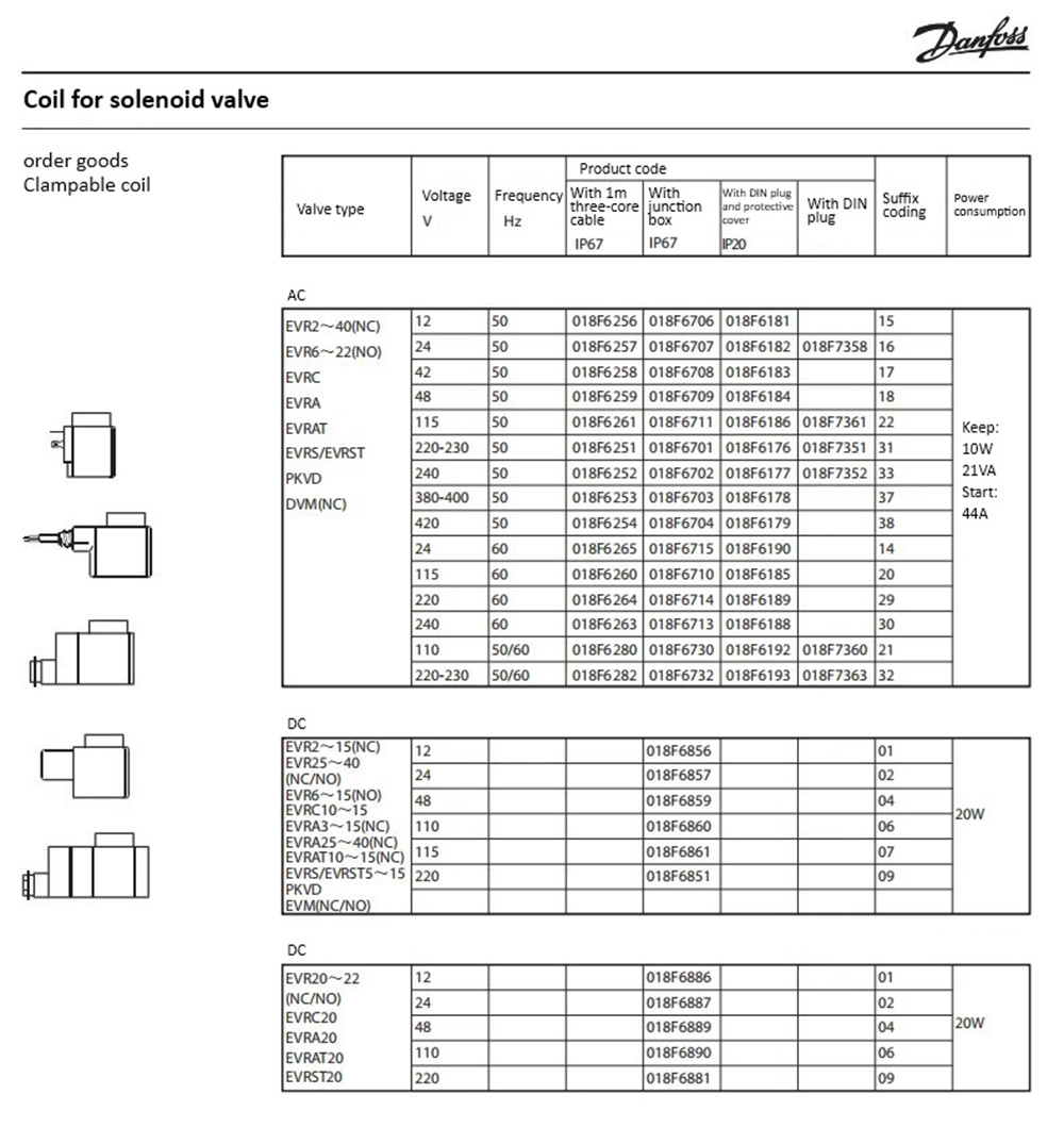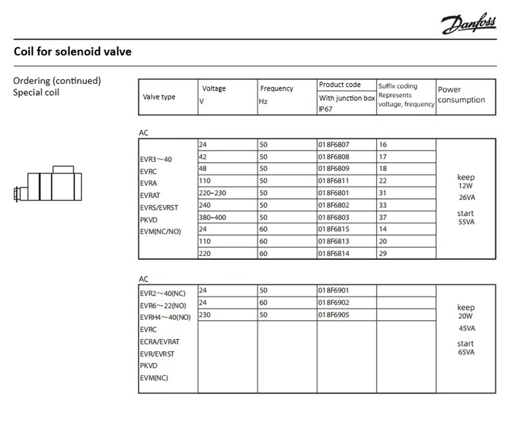 Danfoss Solenoid Valve Coil 018F6701-6176-6182-6192-93-6857-6851