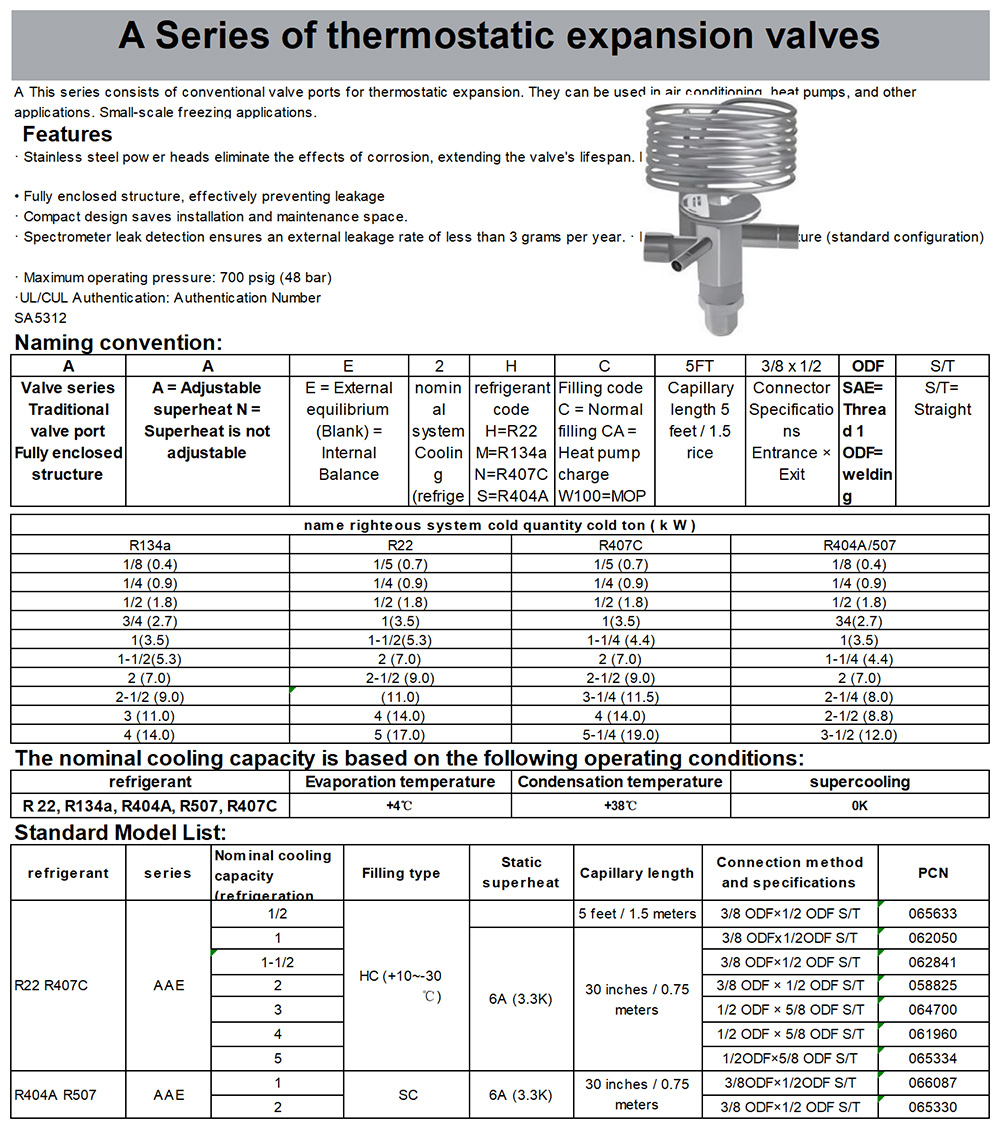 Emerson AAE1-1/2HC Thermostatic Expansion Valve for 1.5 HP External Balance Ice Chiller (Welding)