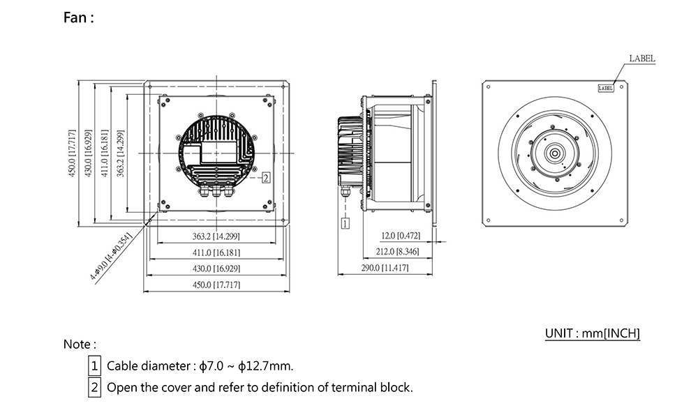 Delta GTM056PBT34R EC Centrifugal Fan, Energy-saving, Low-noise, Suitable for Industrial Cooling Systems.