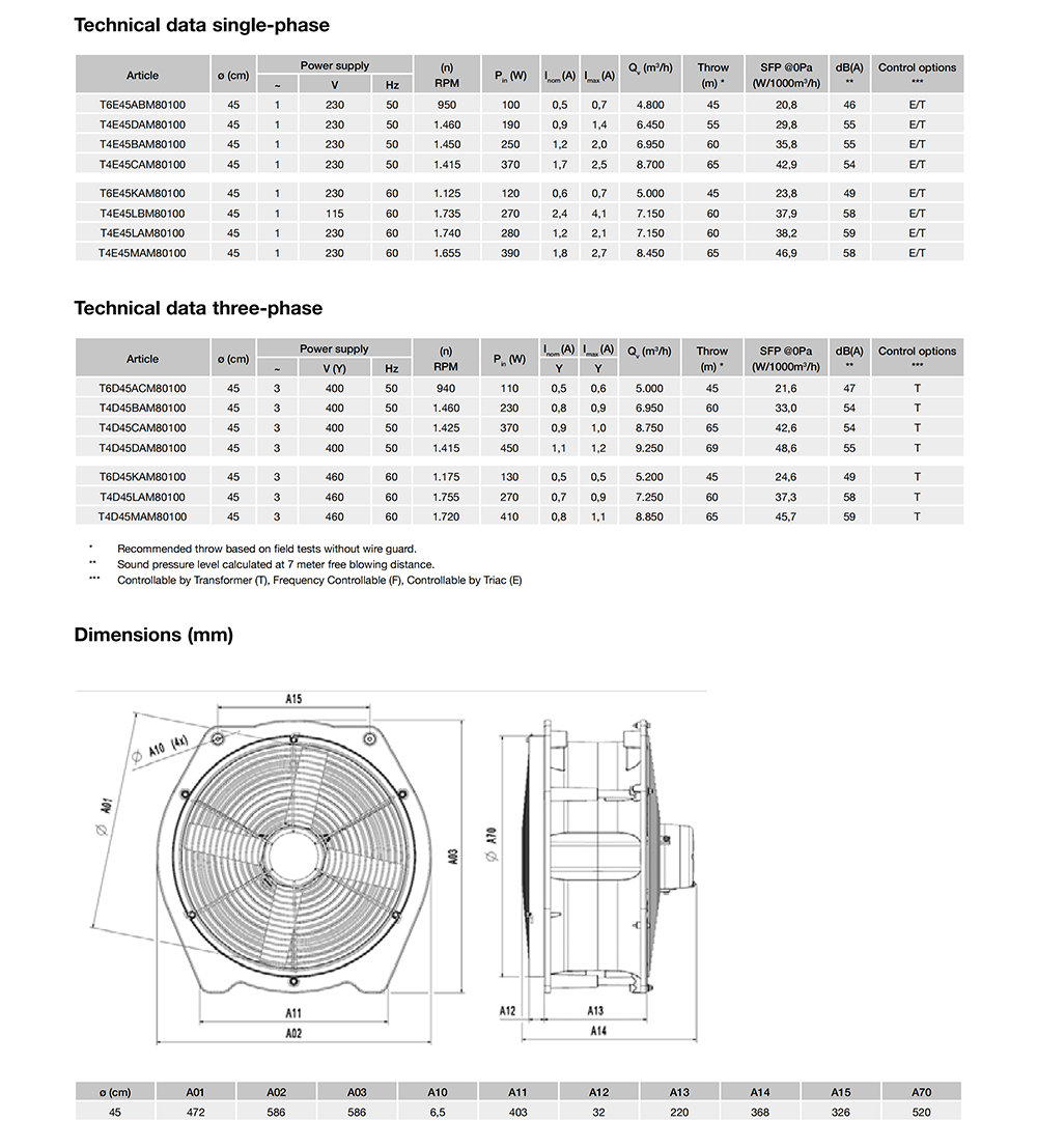High Energy Efficiency: One of the most energy-efficient fans in its class, reducing operational costs while maintaining high airflow performance.