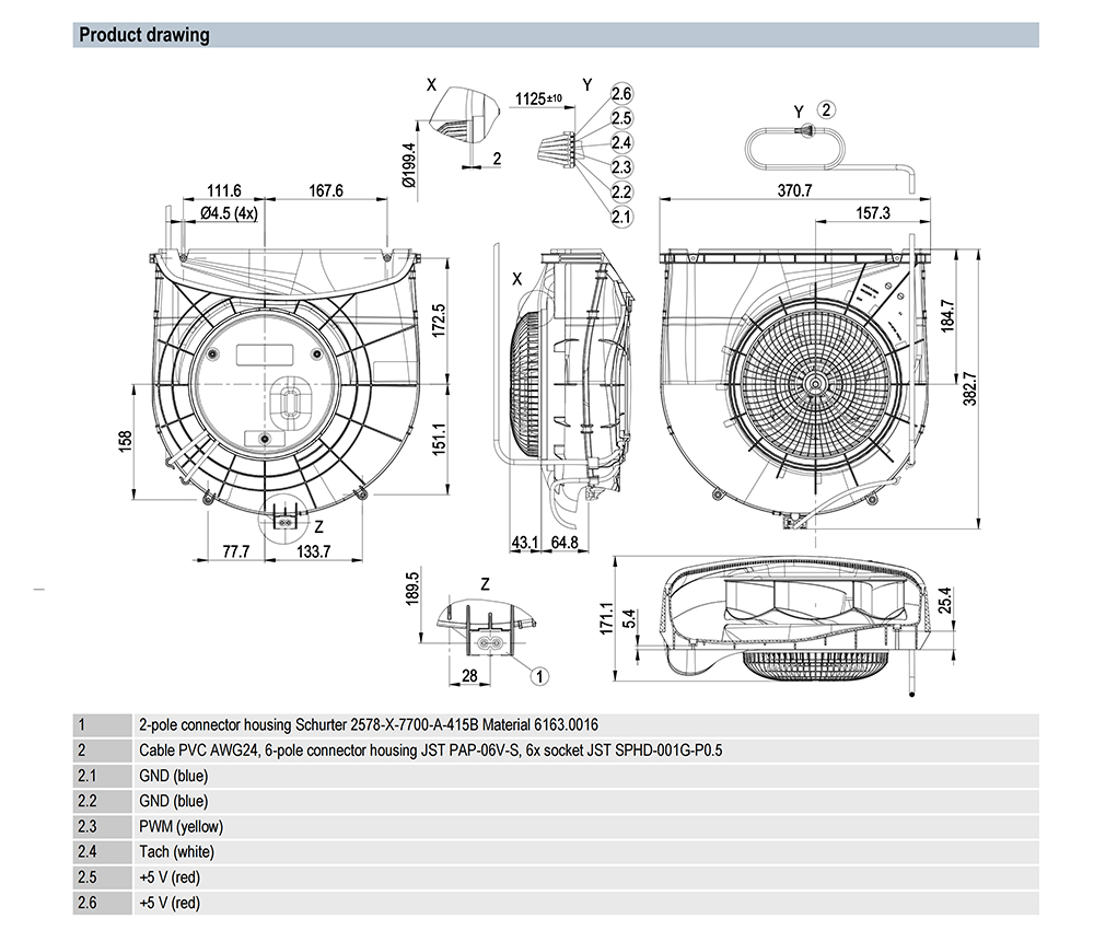 K3G250-RZ27-10 Ebm-papst Specification Drawing: