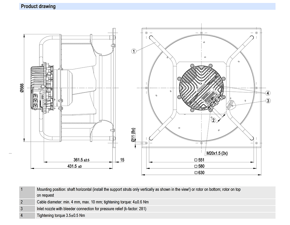 K3G500-AP24-01 Ebm-papst Specification Drawing:
