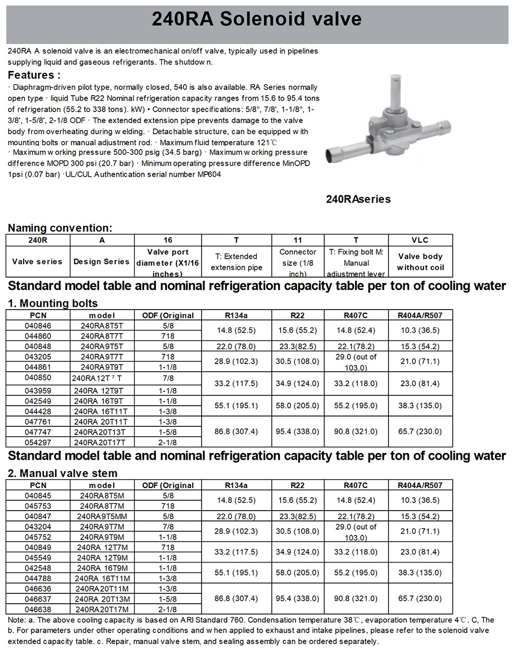Original Emerson solenoid valve 240RA16T11T, refrigeration and air conditioning solenoid valve coil 16T11T