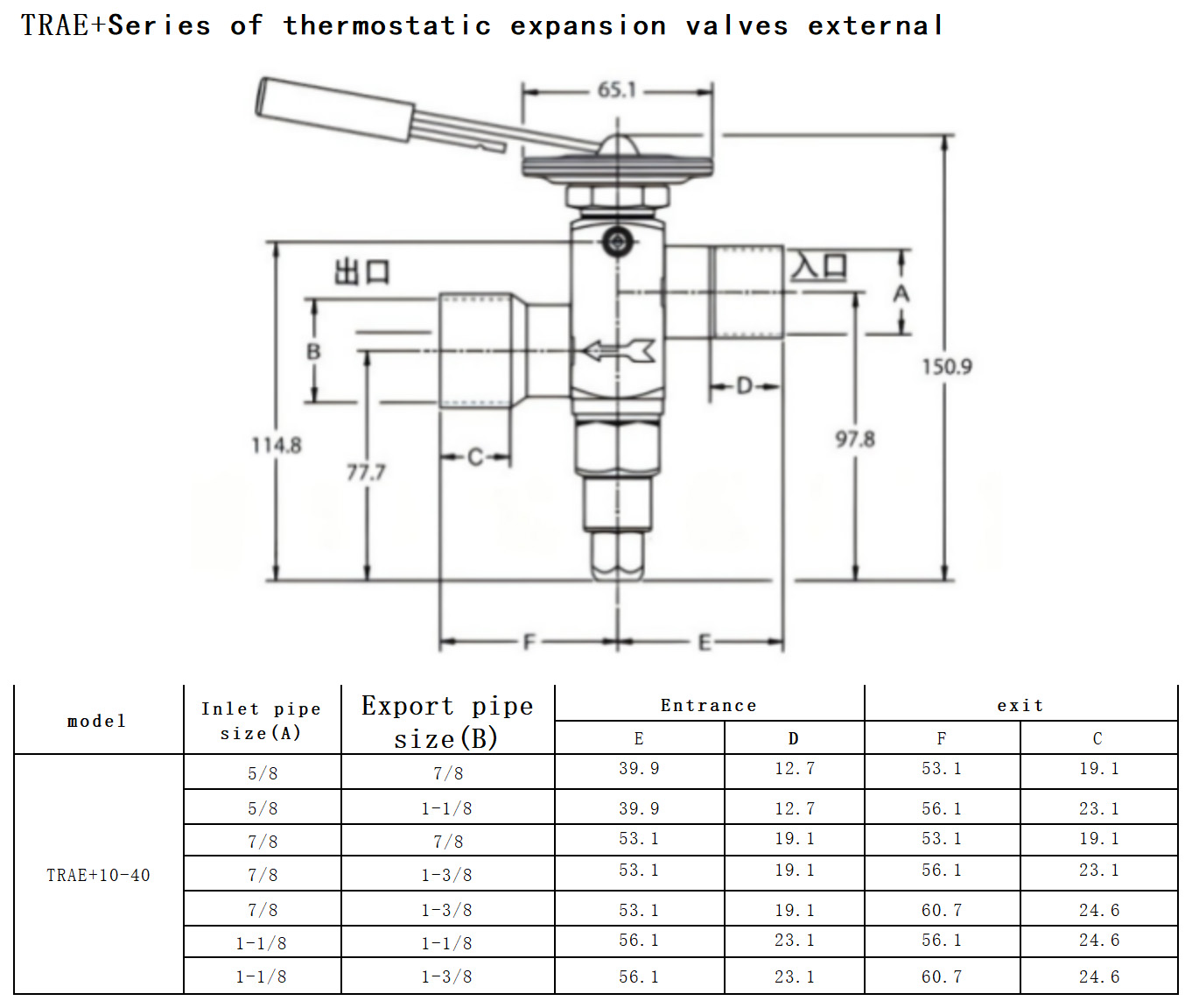Original Emerson thermostatic expansion valves TRAE+30HCA and TRAE40HCA for air conditioning and cold storage.