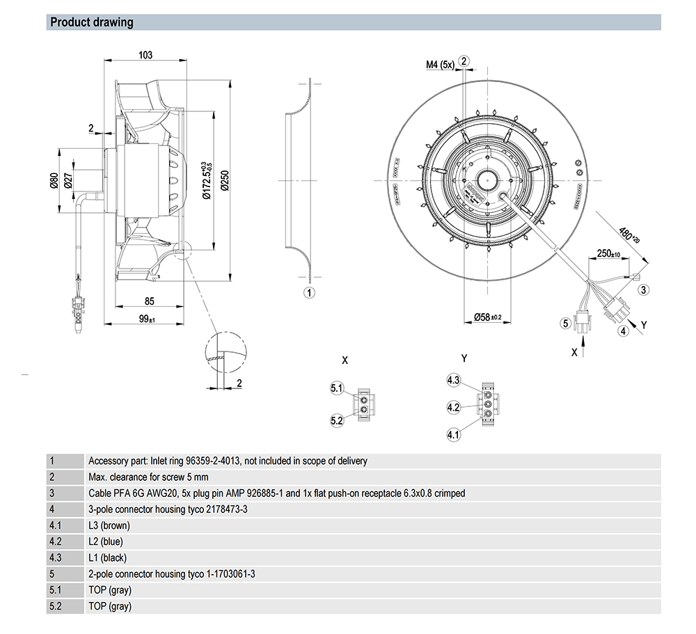 R2D250-RA10-12 Ebm-papst Specification Drawing:
