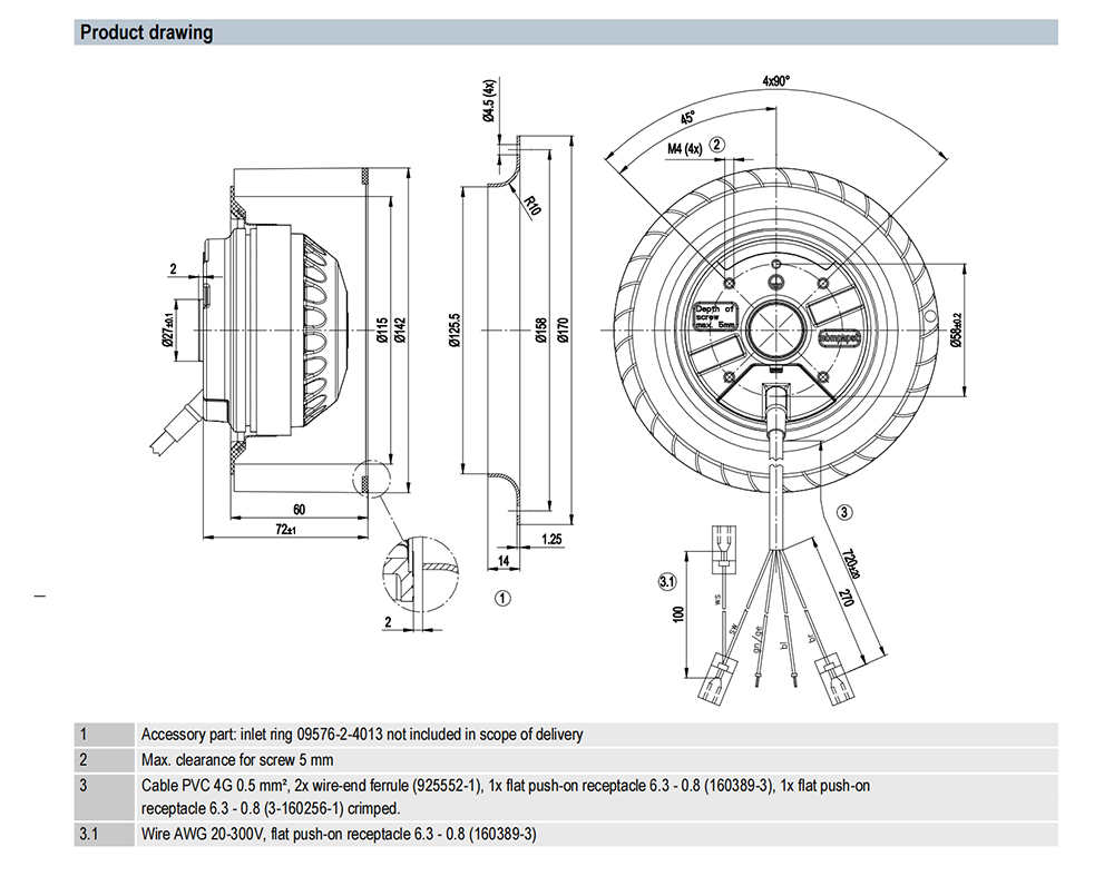 R2E140-AS77-73/G01 Ebm-papst Specification drawing: