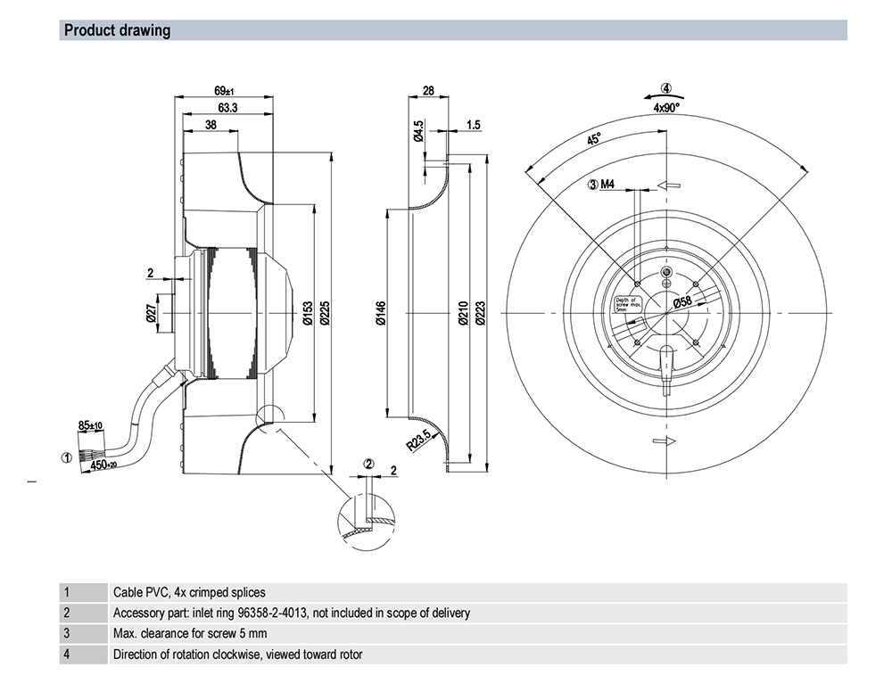 R2E225-AT51-05 Ebm-papst Specification drawing: