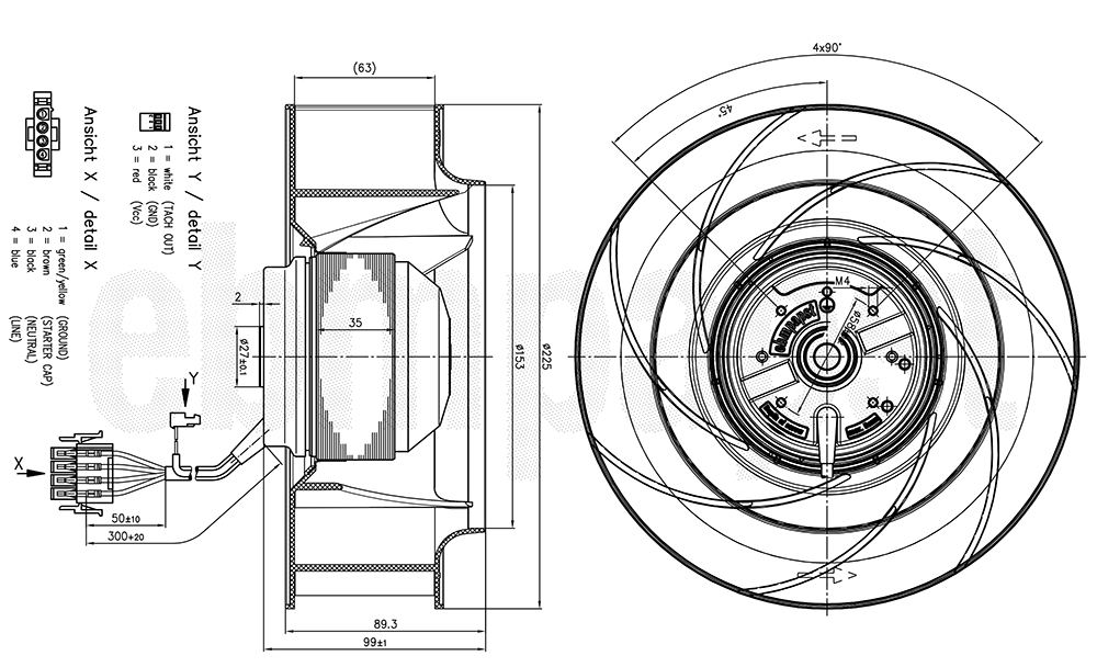 R2E225-BD92-51 Ebm-papst Specification drawing: