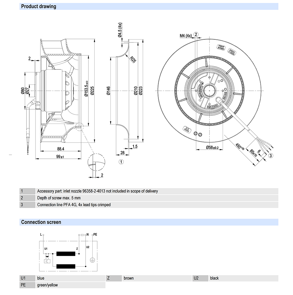 R2E225-RA40-24/G01 Ebm-papst Specification Drawing: