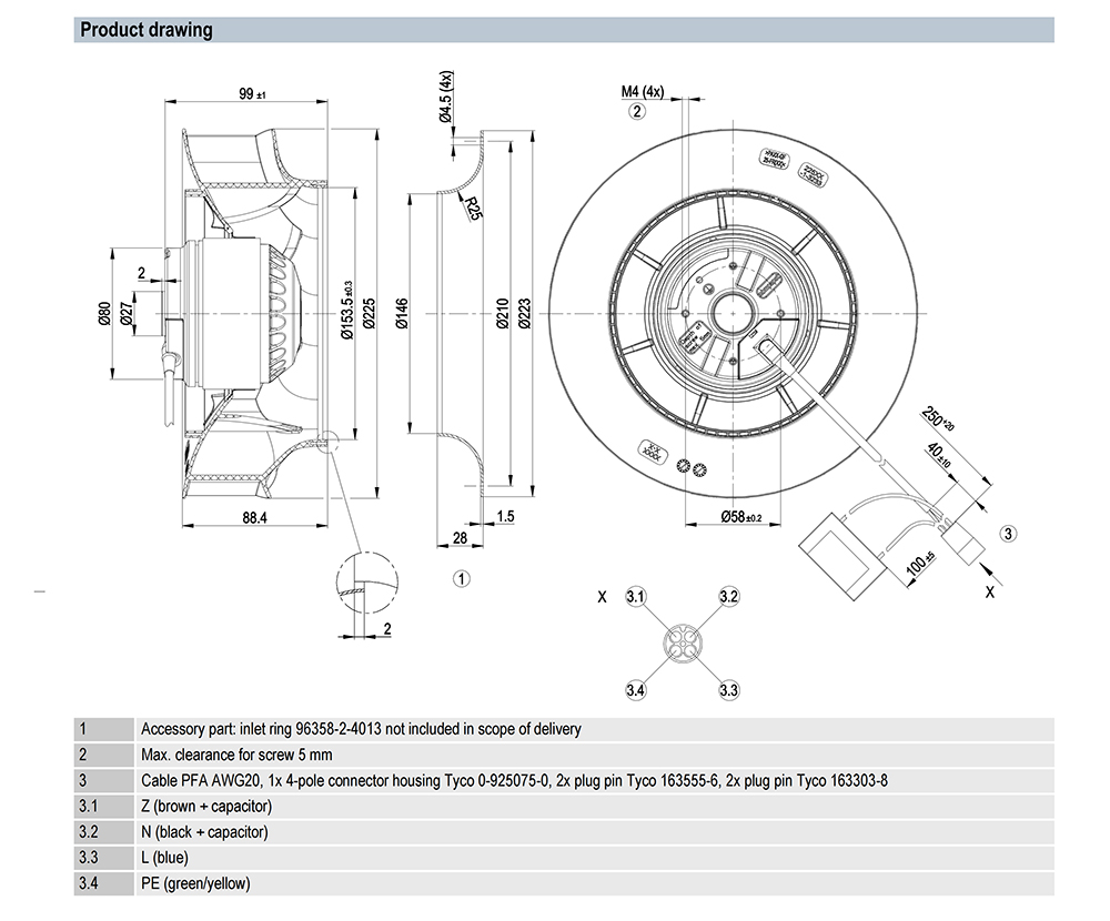 R2E225-RA92-31 Ebm-papst Specification Drawing: