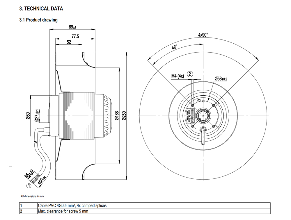 R2E250-AC09-05 Ebm-papst Specification drawing: