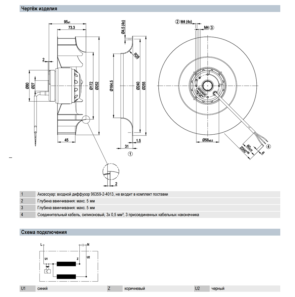 R2E250-AI26-23 Ebm-papst Specification drawing: