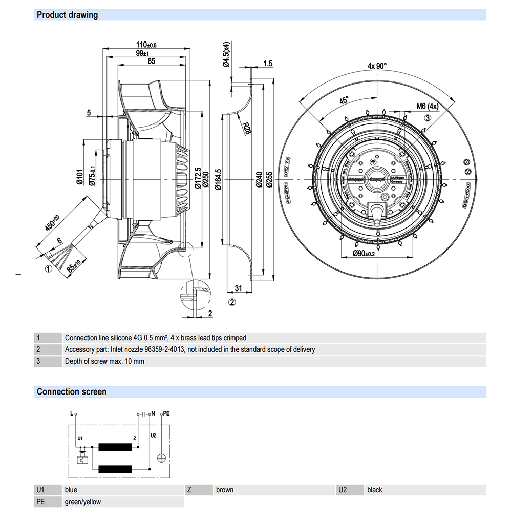 R2E250-RC08-01 Ebm-papst Specification drawing: