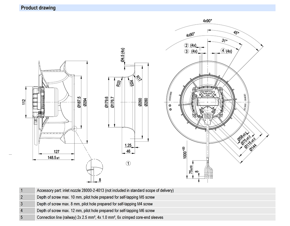 R3G280-RU26-81 Ebm-papst Specification drawing: