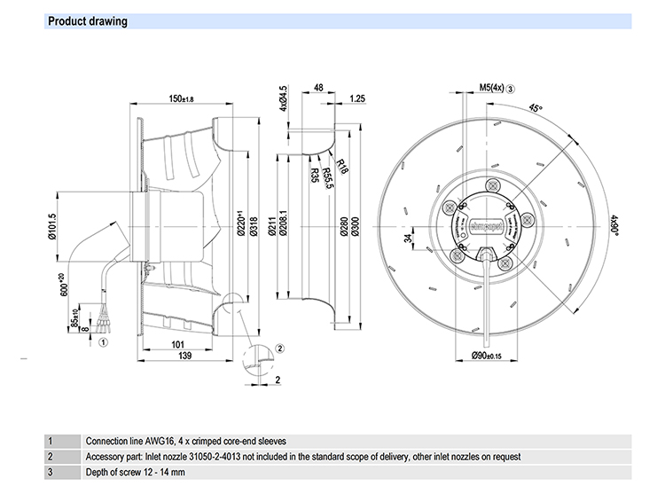R3G310-AL09-30 Ebm-papst Specification drawing: