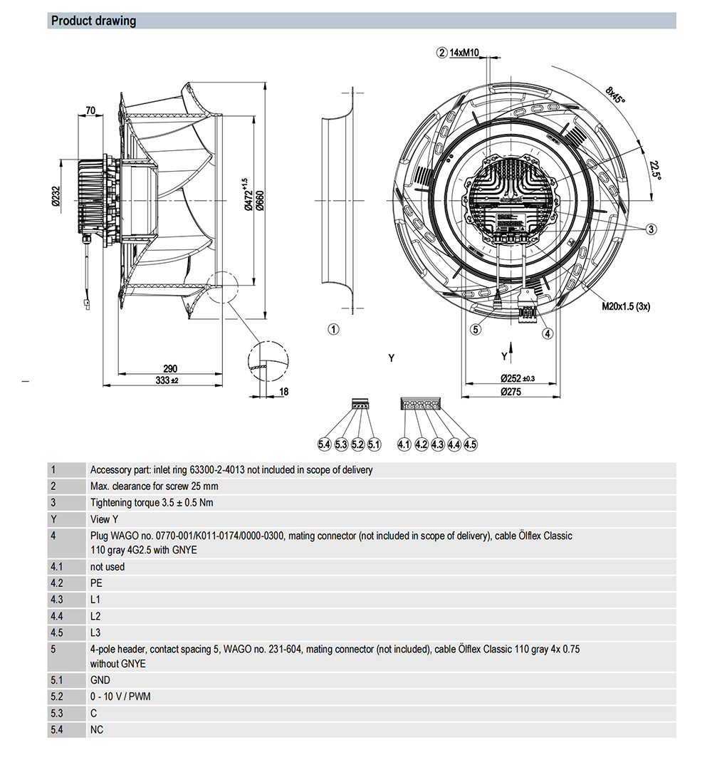 630mm centrifugal fan with advanced EC motor. Delivering massive flux for data center CRAC and AHU, featuring smart overload and under-voltage protection.