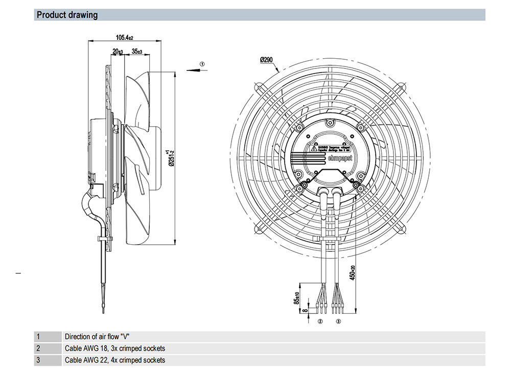S3G250-BC54-01 Ebm-papst Specification drawing: