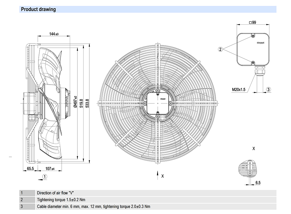 S4D500-CM01-03/F01 Ebm-papst Specification drawing: