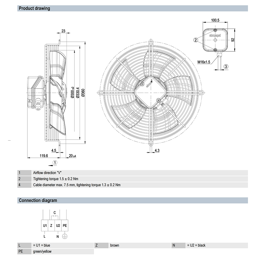 S4E300-AS72-44/F01 Ebmpapst Specification Drawing: