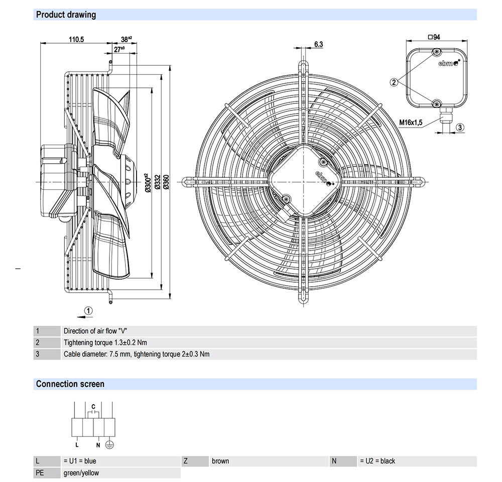 S4E300-AS72-53-S01 Ebmpapst Specification Drawing: