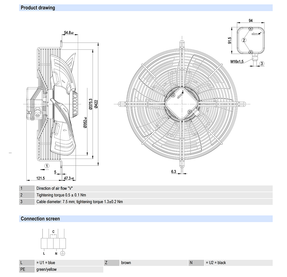 S4E350-AN02-43 Ebm-papst Specification drawing: