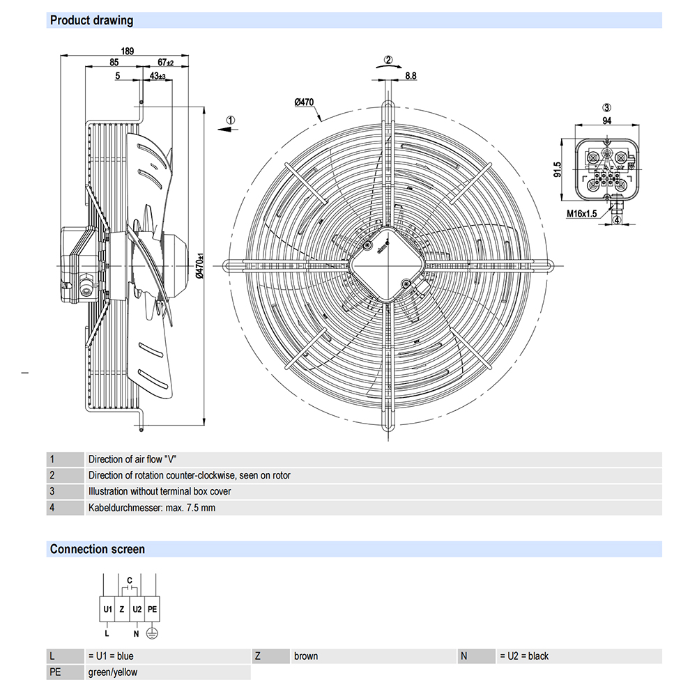 S4E400-AP02-44 Ebm-papst Specification drawing: