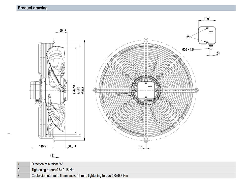 S4E500-AM03-02 Ebm-papst Specification drawing: