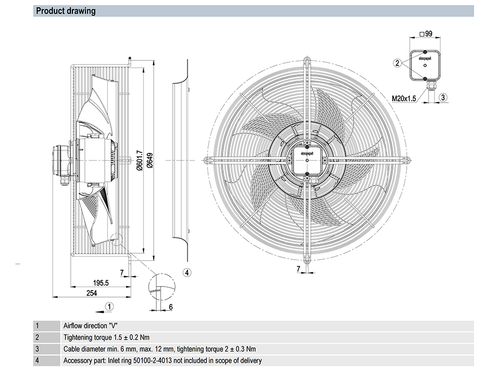 S4E500-ZL07-01 Ebm-papst Specification drawing:
