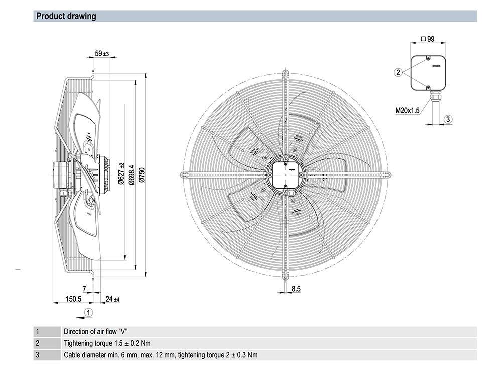 S6D630-AE01-01 Ebm-papst Specification drawing: