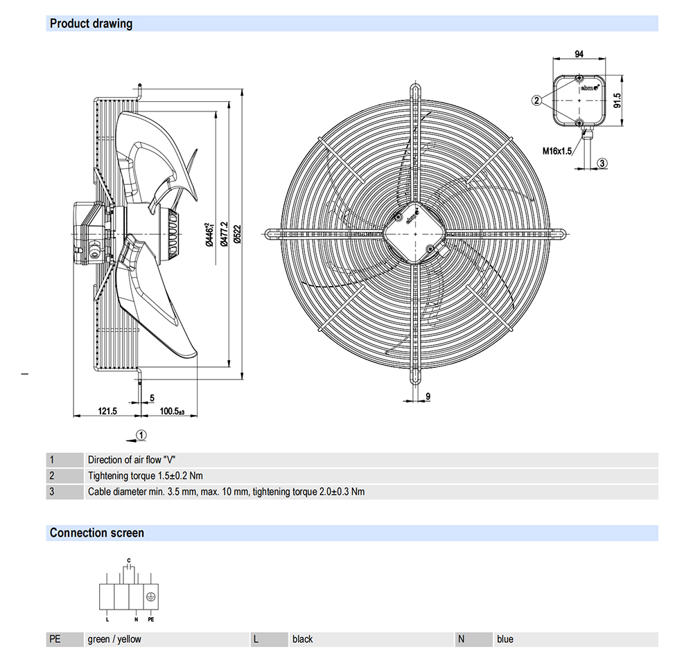 S6E450-AF08-29/F01 Ebm-papst Specification drawing: