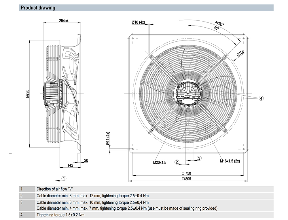 W3G630-GE55-21 Ebm-papst Specification drawing: