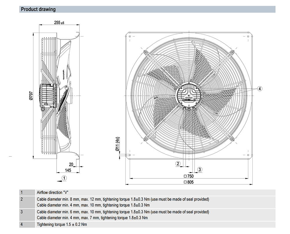 W3G630-NP04-H1 Ebm-papst Specification drawing: