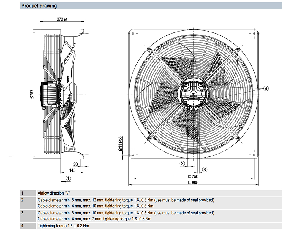 W3G630-NR63-01 Ebm-papst Specification drawing: