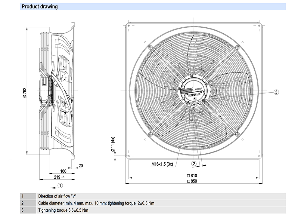 W3G710-GO81-90 Ebm-papst Specification Drawing: