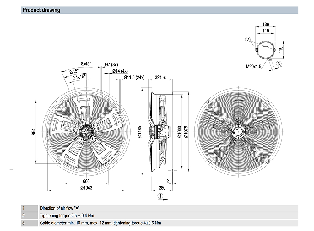 W8D990-CE05-80 Ebm-papst Specification drawing: