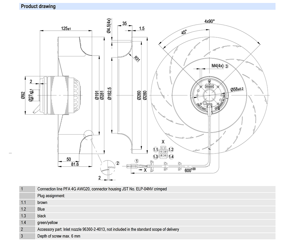 R2E280-AE52-17 Ebm-papst Specification Drawing:
