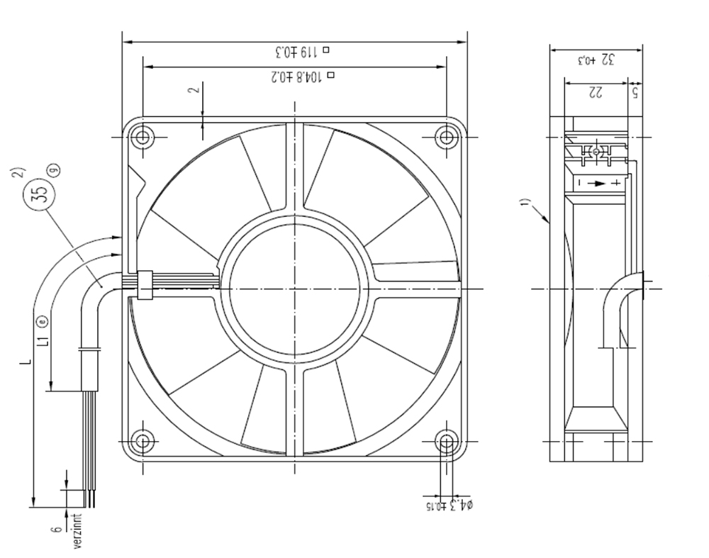 4314S Ebm-papst Specification drawing: