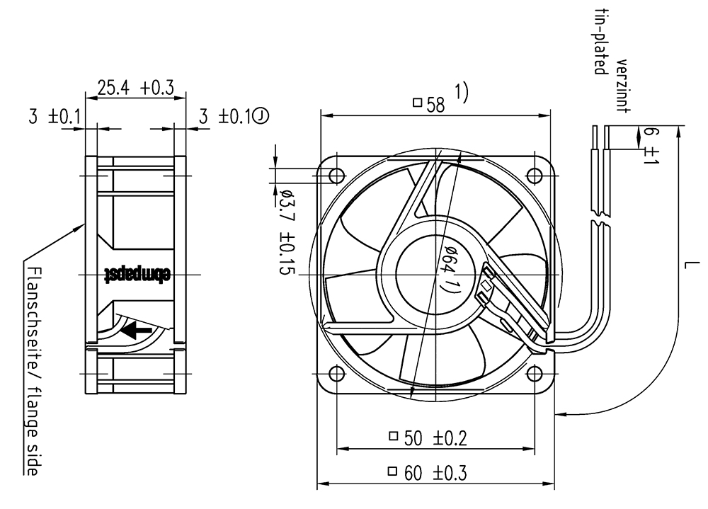 614N/2HHR-296 Ebm-papst Specification Drawing: