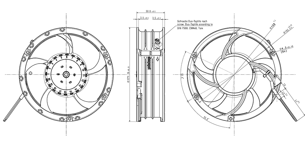 6318/2TDH4PU Ebm-papst Specification drawing: